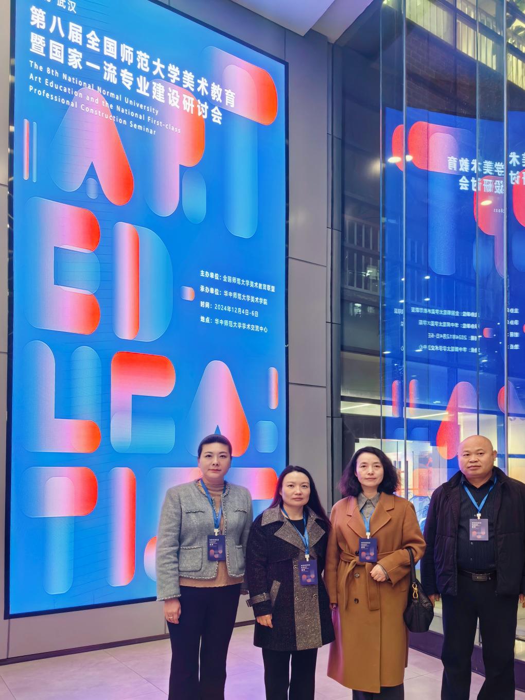 12月5日上午,万象城awcsport官网院长黄新霞、副院长石永松、教学科研办公室主任周俊炜、美术教研室主任淳敏参加了在华中师范大学举办的第八届全国师范大学美术教育暨国家一流专业建设研讨会。此次研讨会吸引了众多师范院校的专家学者齐聚一堂,全国40余所师范院校的120余名专家学者共同探讨师范院校美术教育的新理念与新方向,为促进美术教育人才培养模式的改革与创新汇聚各方智慧。