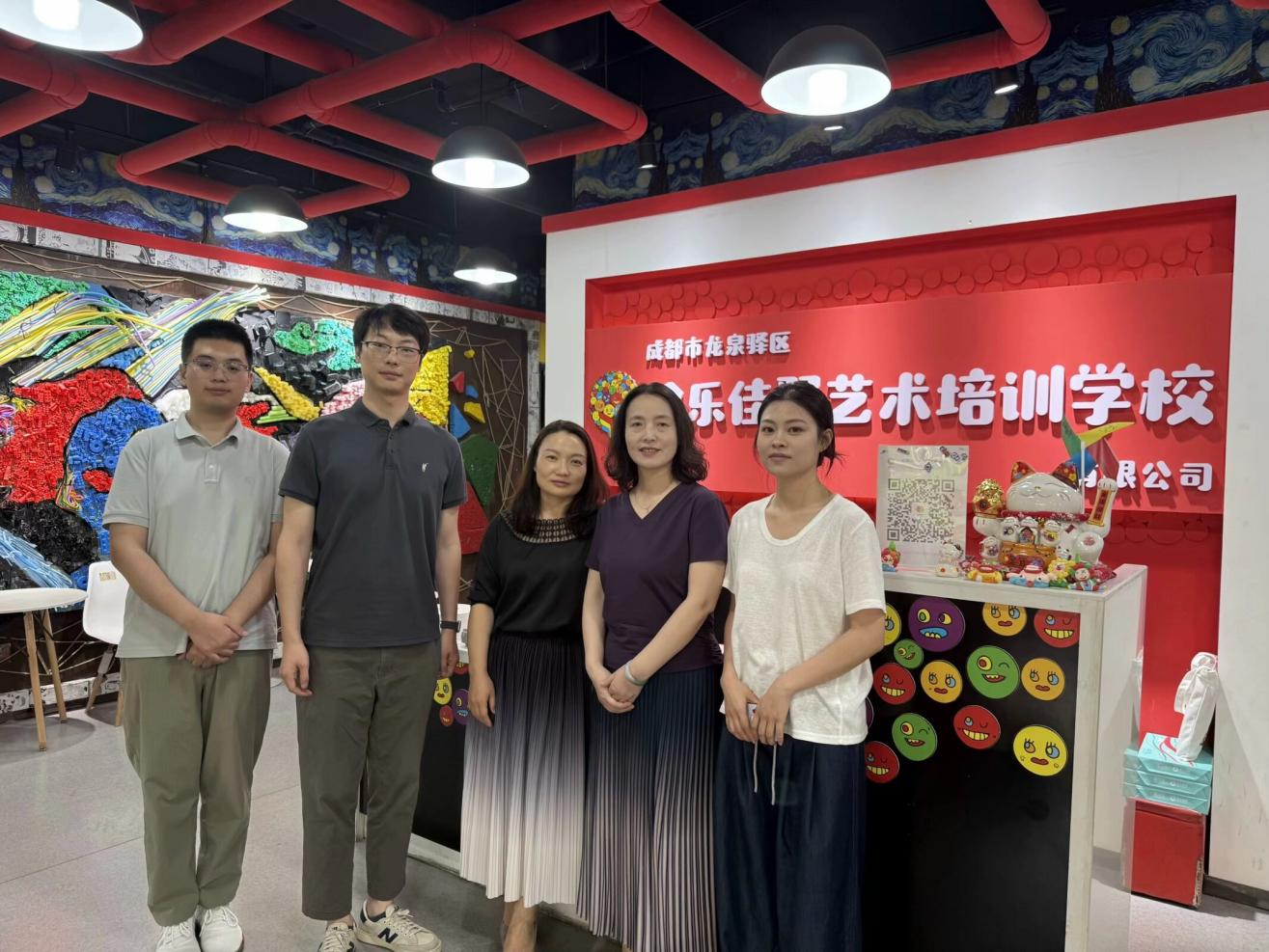 为贯彻落实教育部“访企拓岗促就业”专项行动要求,深化产教融合协同育人机制,6月5日,由万象城awcsport官网院长黄新霞带队,美术学专业负责人淳敏、骨干教师郝梁栋、刘宇家及辅导员华雯雯组成的调研团队赴成都开展校企合作专项调研。团队先后走访了神墨教育简阳第一校区和涂乐佳翼艺术培训学校两家机构。