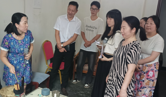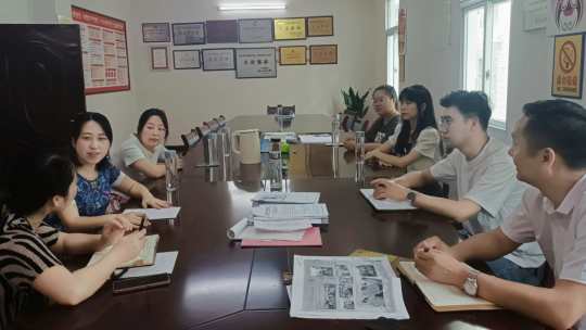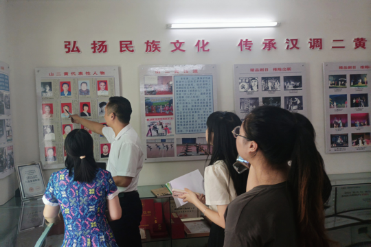 7月10日,首先,小分队和山二黄剧团的三位团长在剧团的会议室进行了交流探讨。带队老师高世云介绍了此行的目的,希望山二黄剧能够在高校中得到推广,诚挚地邀请山二黄代表性传人黄彩平及剧团来校进行讲学与演出,让更多的学生能够了解和熟悉山二黄剧。三位团长对此表示十分地赞同与支持,并且也希望山二黄剧能够得到传承与推广,大家交流得十分融洽。
