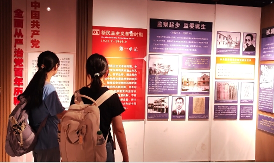 学堂内,孝廉文化展厅,展示中华孝廉文化的传统精髓、内涵价值;家风文化展厅,介绍不同历史时期优秀家风家训的传承和发展,党的百年反腐历程展厅,回顾中国共产党在不同历史时期的纪律建设和反腐历程。