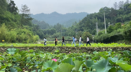 图为团队成员们参观“荷塘月色”乡村振兴景观