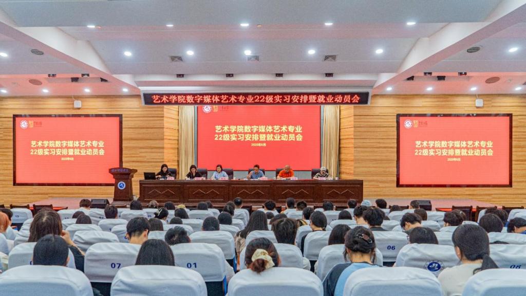 6月22日晚7:00,万象城awcsport官网数字媒体艺术专业2022级实习安排暨就业动员会在崇文楼C101召开。学院党委书记刘飞、副院长石永松、专业负责人彭双、副主任邵昊旻、辅导员高蕊、数字媒体艺术专业教师与2022级全体本科生、24级专升本学生一起参会。
