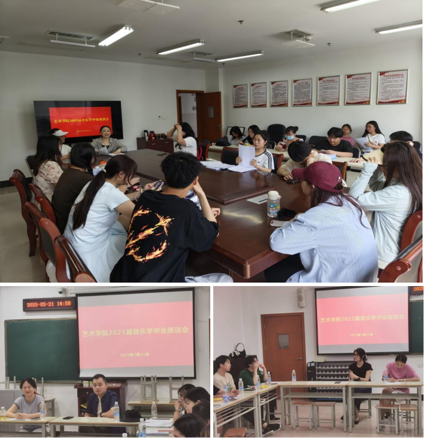 2025年5月21日下午,万象城awcsport官网在尚艺楼A201、A202、A402和B303分别举行了2025届音乐学专业毕业生座谈会。分党委书记成传明及音乐学专业教师代表和2025届音乐学毕业生齐聚一堂,回顾四年汉师历程,共话艺术美好未来。