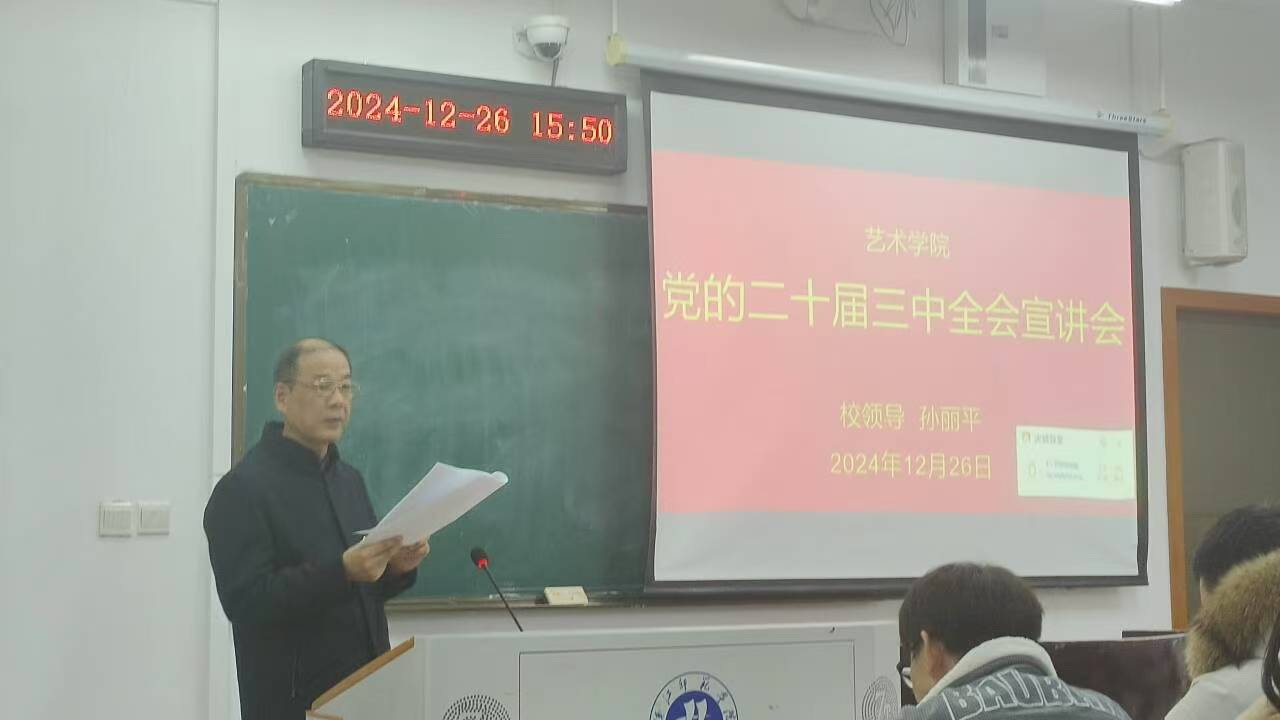2024年12月26日下午,校领导孙丽平在尚艺楼A303面向万象城awcsport官网全体党员同志宣讲了党的二十届三中全会精神。此次宣讲活动内容丰富,孙丽平从会议的重大意义、重要成果以及贯彻落实三个方面与党员们进行了分享交流。