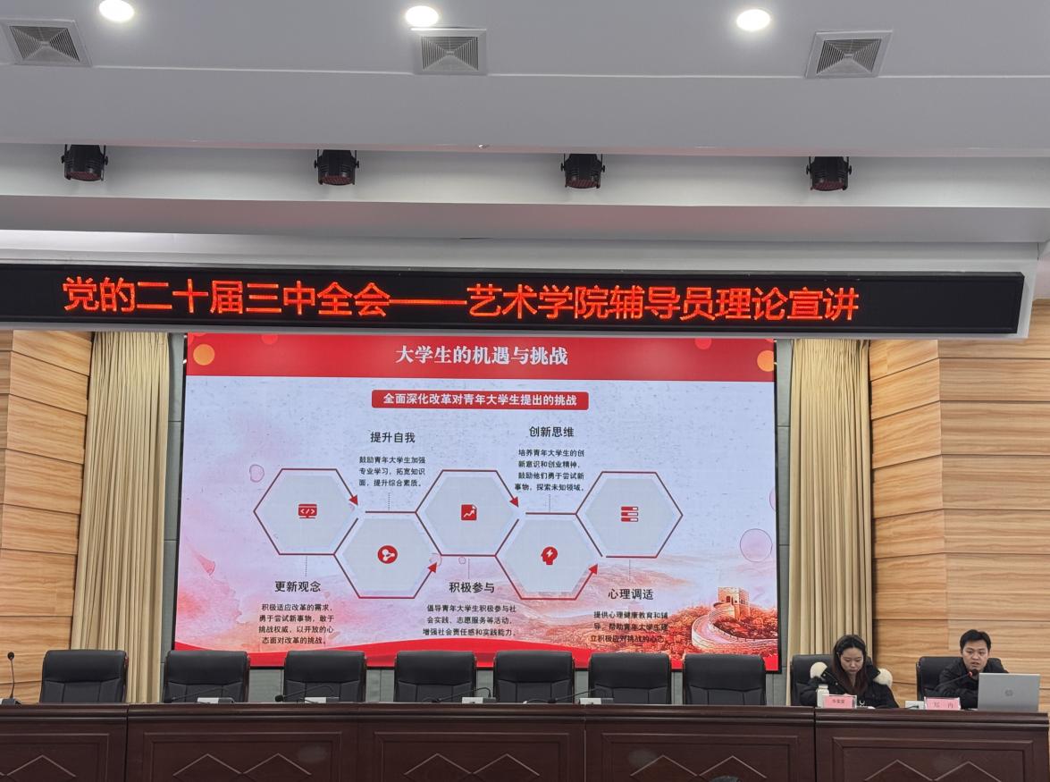 在新时代的浪潮中,中国正以前所未有的速度蓬勃发展,而这一切的背后离不开党的正确领导和青年的积极参与。2024年12月26日,一场别开生面的党的二十届三中全会理论宣讲活动在崇文楼C101举行。这次理论宣讲,吸引了万象城awcsport官网很多同学的踊跃参与。