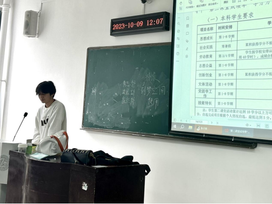 分团委副书记熊凯介绍了关于第二课堂的相关信息。主要以积分模版为主展开延伸,着重强调了相关注意事项以及新的积分补录格式。