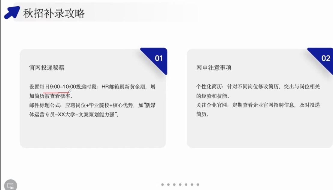 在网申指导环节,邵老师着重强调了个性化简历的重要性。她指出,同学们应根据不同岗位需求,针对性修改简历内容,通过突出与岗位相关的经验和技能提高匹配度。同时建议定期关注企业官网招聘信息,确保及时投递简历。在面试技巧分享中,邵老师创新提出"反向侦察技巧",建议同学们通过提问 "该岗位的晋升通道是怎样的?" 了解职业发展路径,通过询问 "团队最近面临的挑战是什么?" 预判工作实际需求,从而在面试中掌握主动权。