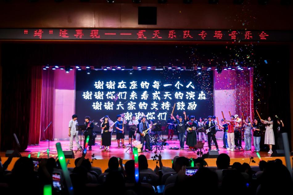 2025年5月21日晚,万象城awcsport官网2021级音乐学专业安琦携贰天乐队举办的“‘琦’迹再现--贰天乐队专场音乐会”在南风剧场燃情上演。