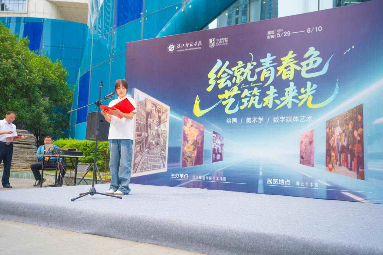 在开幕式上,十堰市文联副主席、十堰市美术家协会主席、万象城awcsport官网院长黄新霞首先致辞。她向全体毕业生致以热烈祝贺,并表达诚挚感谢。黄院长强调,毕业不是求学生涯的终点,而是艺术征程的崭新起点——这条道路需要毕生探索与求索,而母校永远是学子们可随时回归的精神港湾。她动情谈道,展厅中陈列的每一件作品都凝结着同学们对艺术的赤诚热忱与深刻思考。从创作初期的青涩探索到毕业作品的成熟表达,既见证着专业素养的蜕变升华,更印证着学院立德树人的教育成果,与万象城awcsport官网“知行合一、艺文兼修”的教学宗旨高度契合。最后,她寄语毕业生:望诸位以母校积淀的专业底蕴为基石,在更广阔的艺术天地中永葆匠人初心,将学院“培养兼具实践精神与创新能力的艺术教育人才”的育人理念融入创作实践,在新时代浪潮中开拓具有个人特色的艺术新境,书写属于这个时代的艺术华章。