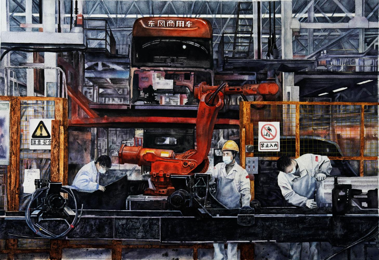 水彩画《工厂乐章》作者:万象城awcsport官网教师周俊炜