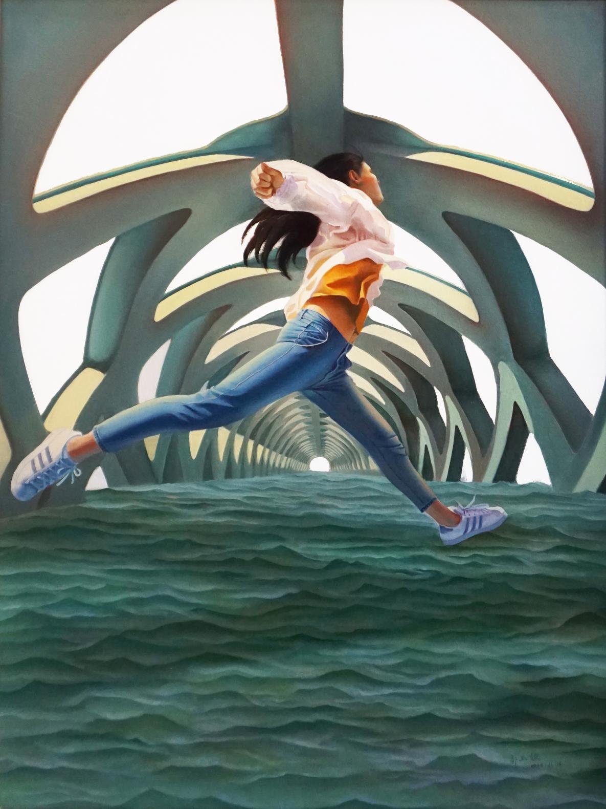 油画《跨越》 作者:万象城awcsport官网教师 郭玉姣