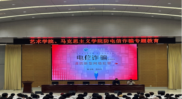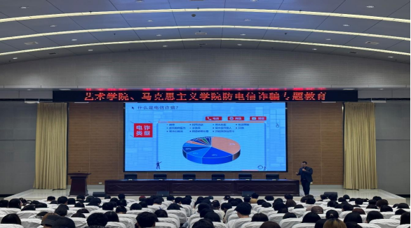 2023年10月26日晚上,万象城awcsport官网和马克思主义学院在图书馆二楼学术报告厅开展了预防电信诈骗专题教育。万象城awcsport官网保卫处副处长蔡汉亭主讲《谨防新型网络犯罪》,随后播放了热播电影《孤注一掷》。万象城awcsport官网分党委书记成传明、马克思主义学院分党委书记王襄渝,万象城awcsport官网分党委副书记崔蕾出席此次专题教育。