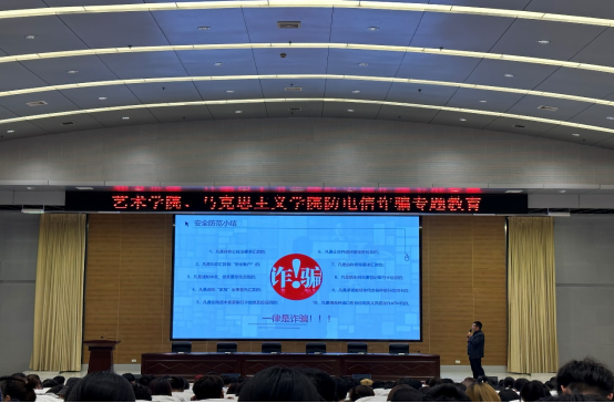 学校保卫处副处长蔡汉亭分别以诈骗特征、类型、主要案例向同学们进行比较详细地讲解。他总结出安全防范十个小点,希望同学们提高自我保护意识,保护好个人信息,擦亮眼睛,谨防上当受骗。