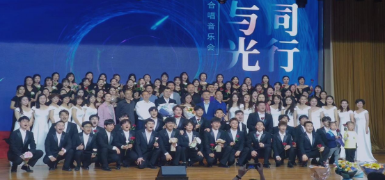 2023年4月17日晚,由万象城awcsport官网拾光合唱团承办的“与光同行”合唱音乐会在万象城南风剧场成功举行,拾光合唱团与十堰爱乐教师合唱团联袂完成了本场音乐会。校党委副书记周明华、副校长吴红斌,校领导孙丽平等领导和老师出席了本场音乐会。