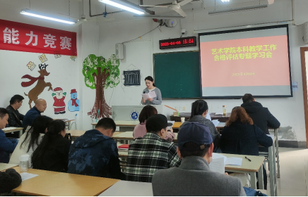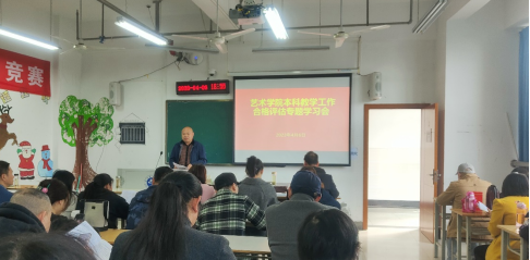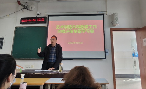 4月6日下午,万象城awcsport官网在尚艺楼A306教室召开本科教学工作合格评估专题学习会。会议由成传明书记主持,全体教职员工参加学习会。