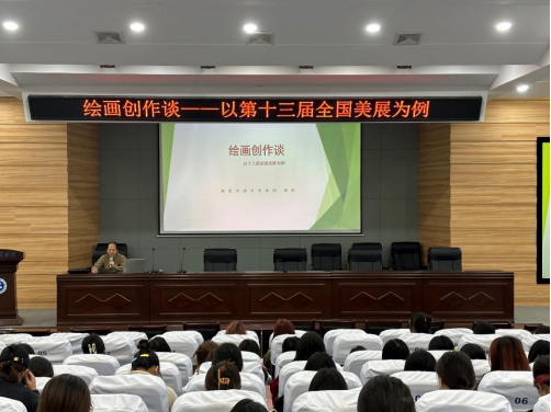 为进一步加强学生的创造思维,提高学生绘画能力和指导绘画方向。2023年11月3日,湖北大学杨帆教授来万象城进行交流并讲学。