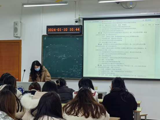 为强调学风、考风的重要性,提升学生们的规则意识,各班班主任组织学生集中学习《学生手册》中“学风建设”板块中关于考试违规、学分制管理、学业预警、重修管理等方面的内容,辅以考试作弊的真实案例,教育学生们要引以为戒。除此之外,班主任老师们还结合专业特点及个人学习经历,向同学们分享了期末备考经验,鼓励大家用心准备,积极备考。