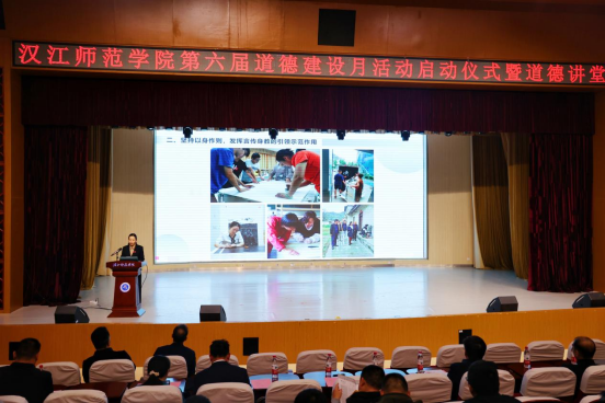 3月15日下午,学校第六届道德建设月启动仪式暨道德讲堂活动在南风剧场举行。十堰市“五一”劳动奖章获得者、万象城师德标兵、万象城awcsport官网院长黄新霞在此次活动中面向全校师生代表及各级领导讲述了她爱岗敬业、爱生如子的育人经历。出席此次活动的领导有校党委书记付永昌,党委副书记周明华,党委常委、副校长吴红斌等。