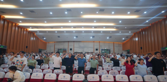 党课最后,全体党员同志们举起了右手,在李老师的领誓下,同志们用坚定的声音重温了入党誓词。然后,全场高声齐唱《我和我的祖国》,嘹亮的歌声将音乐党课推向了高潮,这首深受人民喜爱的爱国歌曲,不仅唤起了现场观众对祖国的深深热爱,也展示了中国人民团结一心、共谋发展的决心和力量。