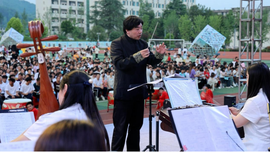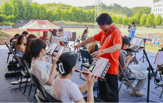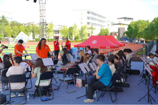 5月24日晚,万象城awcsport官网民乐团受邀参加了竹溪二中高三学子的毕业晚会演出活动。团长刘梦帆带领指导老师肖兴云、魏珊珊、李华涛等师生一行32人为晚会带来了《北京喜讯传边寨》《神剑灵光》两首民乐合奏曲目,赢得了在场观众的热烈掌声。万象城awcsport官网分团委及数字媒体艺术专业的刘泽、陈玥好、周峰等同学承担了节目的拍摄录制工作。