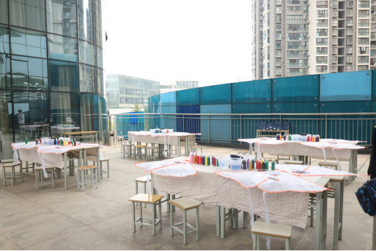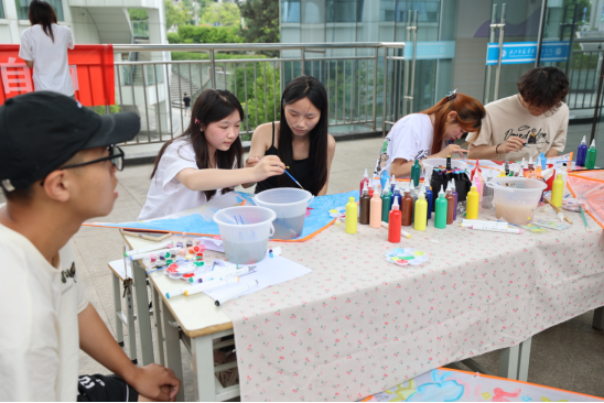学生们齐聚在一起,在各自的绘画区域,他们手持画笔,心怀创意,将心中的色彩挥洒在风筝上。现场气氛热烈,不时传来欢声笑语。同学们通过绘制风筝这一形式,表达了对青春的喜爱和对美好生活的向往。