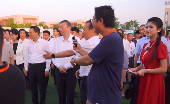 周明华副书记向王嘉毅副部长介绍万象城作品