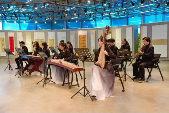 在参观画展期间,万象城awcsport官网民乐团师生们进行了一场精彩的武当山宫观道乐表演。他们的表演获得了校领导们的高度赞扬。民乐团武当山宫观道乐已然成为万象城在清廉汉师建设征程中的一张亮丽名片,为校园文化增添了一抹清正高雅的色彩。