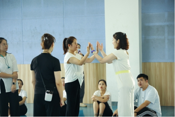 陈利老师以独特的视角引入了无场景表演的概念,通过生动的讲解和示范,让老师们深刻理解了在没有具体场景依托的情况下,如何凭借自身的表演技巧和想象力去塑造角色、传达情感。这种新颖的教学方式激发了老师们的创造力和表演热情。课程的高潮部分当属九色鹿创编环节。陈利老师引导教师们基于经典故事《九色鹿》进行改编。教师们积极投入,大胆构思,将传统与现代巧妙融合,展现出了丰富的想象力和出色的创编能力。引领教师们走进了艺术戏剧和戏曲的奇妙世界。教师们在陈利老师的指导下,亲身体验了戏剧和戏曲表演的技巧,感受了其中所蕴含的独特艺术魅力。通过这堂实践课,教师们对艺术戏剧和戏曲有了更深入的理解,也为今后在音乐教学中引入戏剧元素、丰富教学内容奠定了坚实的基础。