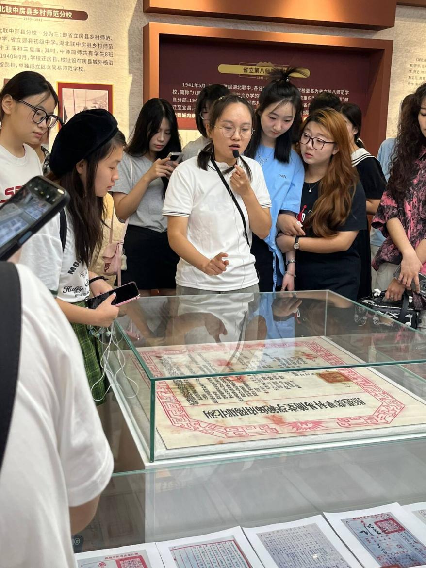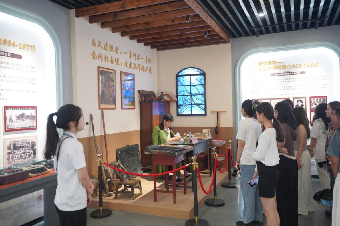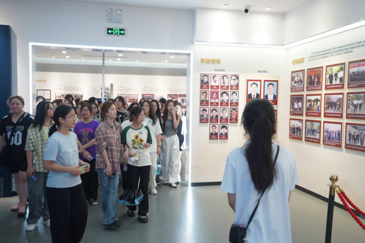 在主讲老师的悉心引领和细致讲解下,新同学们井然有序地步入这座承载着厚重历史的殿堂。校史馆内,一幅幅珍贵的历史图片、一件件具有纪念意义的实物以及详尽的文献资料交相辉映,生动再现了学校自创立以来,在教书育人、科研创新、社会服务等多个领域取得的辉煌成就。这些展品不仅是对过往岁月的铭记,更是对学校独特办学理念和卓越教育成果的颂歌。随着讲解员声情并茂的讲述,新同学们仿佛穿越时空,亲历了学校从初创到壮大的每一个重要时刻。从学校的诞生背景、风雨兼程的发展历程,到那些影响深远的重大事件和涌现出的杰出校友,每一个故事都饱含着激励人心的力量,让在场的每一位新同学都为之动容。尤为引人注目的是,校史馆中还特别展出了自建校以来众多优秀校友在母校学习生活的珍贵展品。这些展品不仅见证了校友们的成长足迹,也映射出学校培养人才的卓越成果。