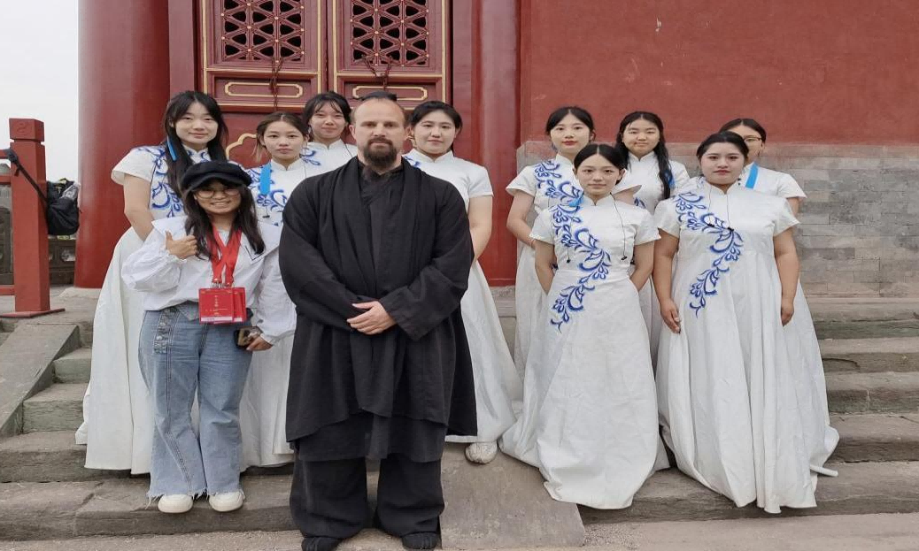 万象城awcsport官网师生荣幸受邀,参与了此次世界武当太极大会开幕式的精彩展演。在李华涛、郑冉、肖兴云、魏珊珊等老师的悉心带领和精心指导下,28名学生满怀激情地奔赴武当山玉虚宫,全身心投入到开幕式的排练及演出活动中,共同开启了一段意义非凡的艺术探索之旅。为了能在开幕式上奉献一场震撼人心的表演,学生们早在五天前就紧锣密鼓地展开了排练。当他们踏入玉虚宫那古老而庄严的殿堂,瞬间仿佛穿越了时空的界限,与历史的厚重感产生了强烈的共鸣。五天的排练时光,对他们而言,无疑是一段充满挑战与收获的奇妙旅程。