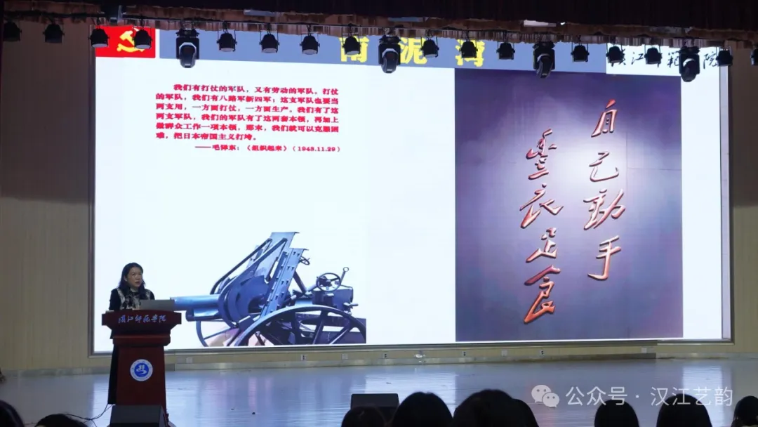 2024年11月10日晚,一场主题为“延安精神·薪火相传——党史教育专题音乐党课”在南风剧场开讲。此次党课由万象城awcsport官网学生一支部书记李博丽老师主讲,通过《山丹丹花开红艳艳》《东方红》《没有共产党就没有新中国》《保卫黄河》《南泥湾》等红色经典音乐以史串歌、以歌叙史,让全校2024年下半年的发展对象们重温了中国共产党在延安时期的奋斗历程和伟大成就。