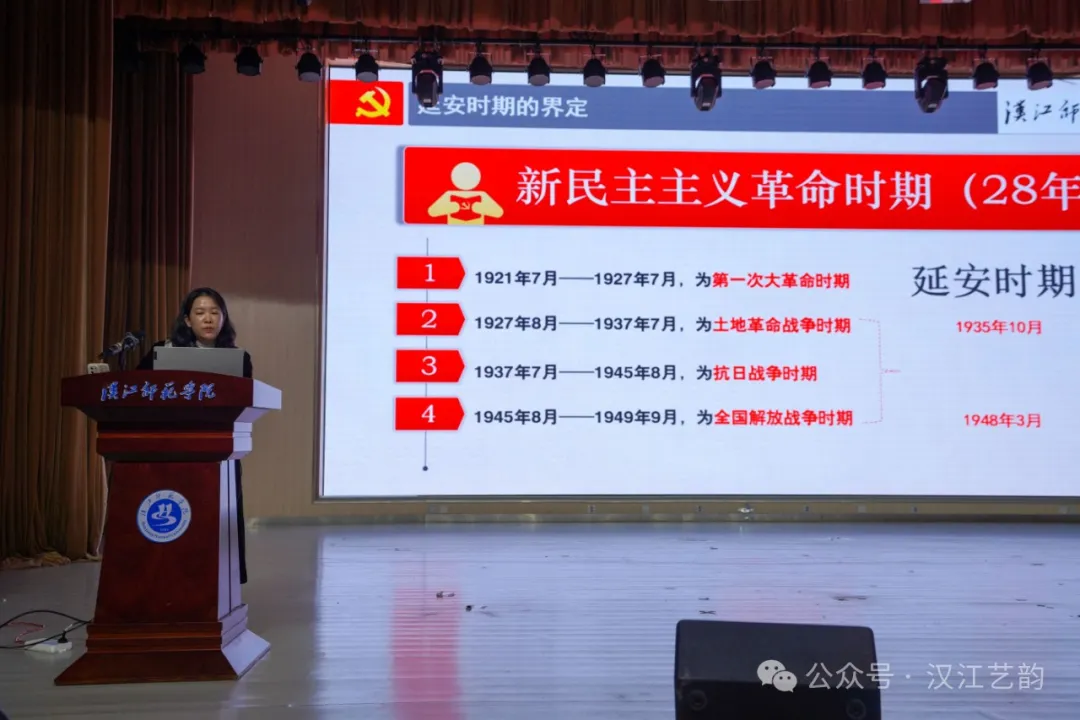 通过分析延安时期的时间界定以及地域政治概念,强调了延安作为政治军事之圣地,教育文化之圣地,思想精神之圣地,革命人才之圣地的重要性。李老师用对唱的形式,和同学们共同合作演唱了陕北民歌《山丹丹花开红艳艳》,让同学们在歌声中走进了中国红军,走进了延安,开启了延安十三年的光辉岁月。