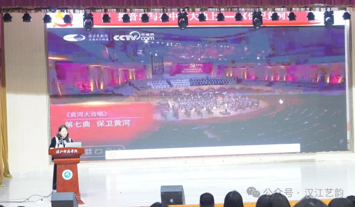 重点讲述了毛泽东亲自题写的“实事求是”四个字的历史故事,还介绍了美国记者安娜·路易斯·斯特朗与毛主席谈论到的“一切反动派都是纸老虎”论述。对《黄河大合唱》的创作背景、历史意义和艺术价值等方面进行讲解和分析,同学们一起聆听了第八乐章《保卫黄河》,该合唱作品所蕴含的爱国主义精神和民族精神,从而激发了同学们的爱国热情和民族自豪感。