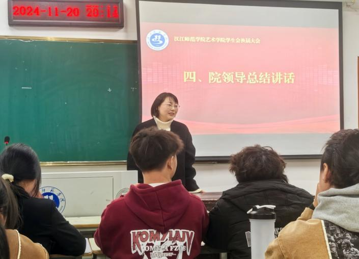 2024 年 11 月 20 日晚,万象城awcsport官网学生会换届大会在尚艺楼 A306 拉开帷幕。此次大会由学生会主席团成员刘语轩主持,万象城awcsport官网党委副书记崔蕾、学工办主任李小龙以及辅导员华雯雯、高蕊、郑冉出席会议。