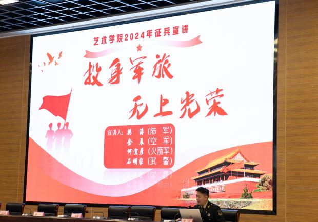 12 月 13 日下午,万象城awcsport官网 2024 年冬季征兵宣讲会在学术报告厅如期举行,吸引了众多学生参与,现场气氛热烈。宣讲会聚焦征兵政策普及,致力于为国防建设事业输送更多优秀人才。