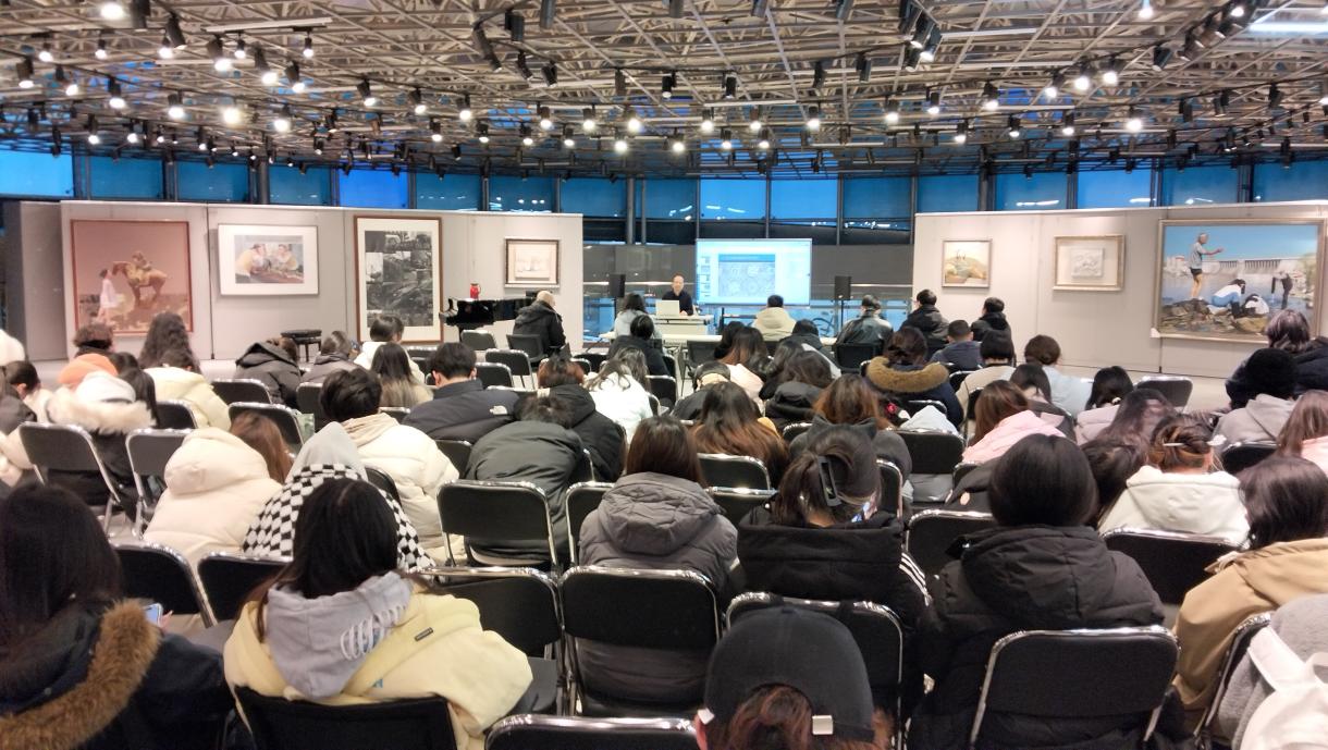 2024年12月30日卿云美术馆二楼迎来了一场别开生面的专题讲座,主题为莫高窟藻井莲花图像嬗变。此次讲座由西北师范大学美术学院副教授岳锋主讲,副院长石永松主持,美术学和绘画专业众多师生前来聆听。