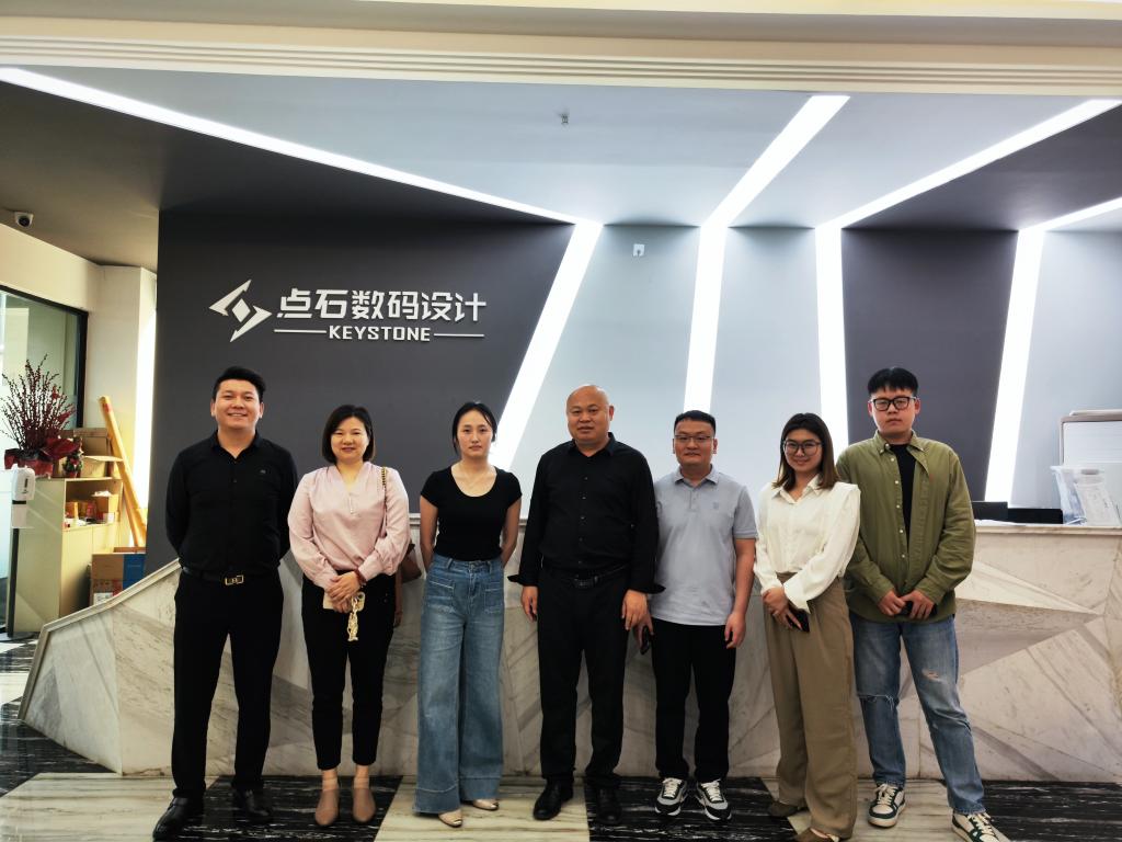在武汉荆楚点石数码设计有限公司,实地考察企业运营环境与项目成果。企业总监胡静表示数字艺术行业技术迭代迅速,企业需要高校输送具备扎实基本功与创新思维的人才。双方就项目实训、定向培养、人才输送展开深入探讨。绘画专业教研室主任燕宗友表示,绘画专业毕业生的就业渠道可进一步拓宽,利用自身优势转向对美术功底有较高需求的新岗位。数字媒体艺术专业负责人彭双提出,将结合企业项目需求,优化实践课程模块,推动学生作品向市场化、商业化转型。