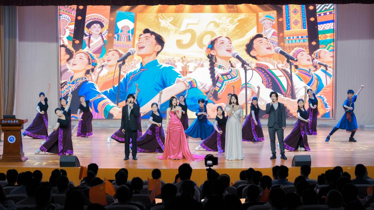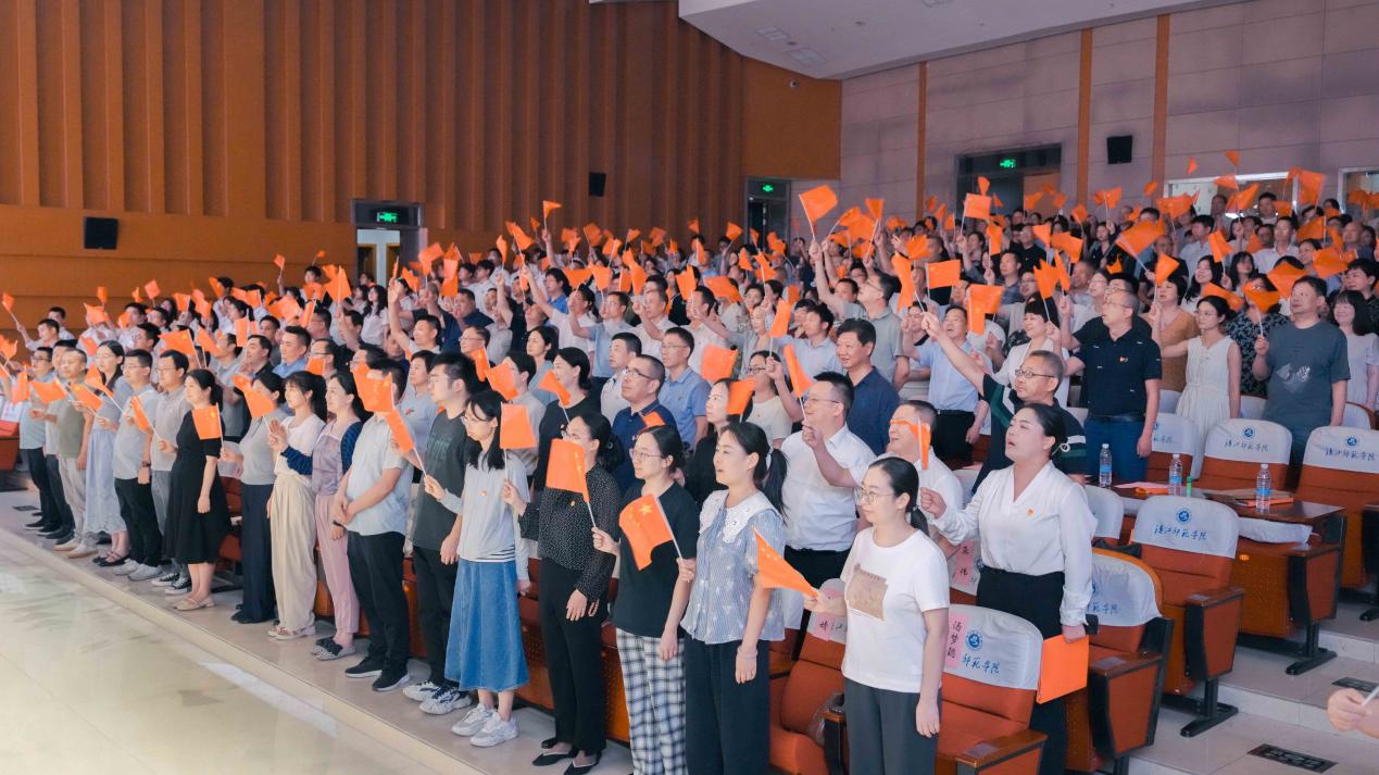 6月13日晚,南风剧场内歌声激昂,红色旋律奏响信仰力量,由万象城awcsport官网党委与十堰市财政局党组共同主办的“财韵润初心 师音咏使命”——“五史”专题音乐党课开讲。校党委常委、副校长吴红斌、校领导孙丽平、党委组织部常务副部长刘成、化学与环境工程学院党委书记成传明,十堰市财政局党组书记、局长王小平及班子全体成员,与来自市财政系统的300余名党员干部,万象城awcsport官网、化学与环境工程学院的100余名党员师生一起聆听了专题音乐党课。万象城awcsport官网党委书记刘飞主持。