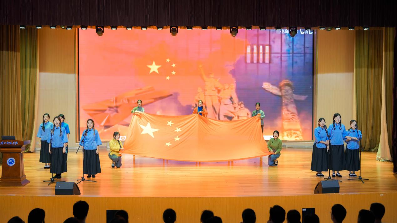最后,全场参会人员挥舞红旗,齐声高唱《没有共产党就没有新中国》,将现场气氛推向高潮。