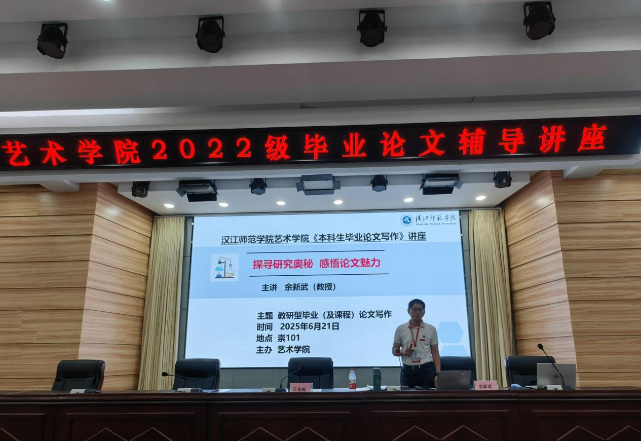 讲座中,余新武围绕毕业论文的选题、结构与规范性展开深入讲述。他指出,论文要从艺术实践和当下热点出发,挖掘具有创新性且切实可行的课题,在结合自身实际的同时,确保研究具备可操作性;论文要逻辑清晰、层次分明,各章节间紧密相连,形成有机整体,论证过程要严谨有序;要注重文献引用等细节,培养严谨的学术态度。
