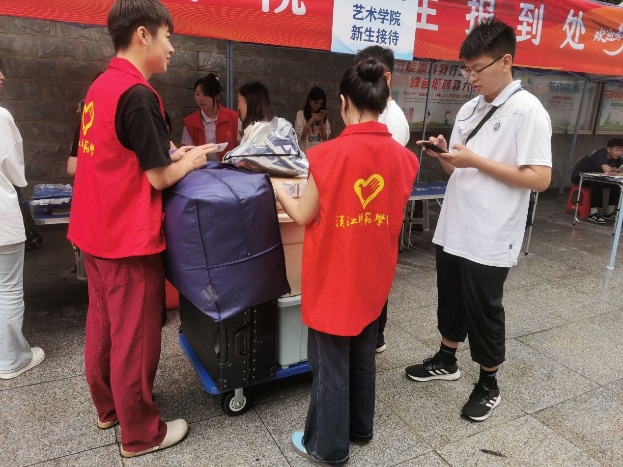 从迎新点到宿舍区,从学院老师到学生志愿者,万象城awcsport官网全体师生用行动诠释着“以生为本” 的服务理念。志愿者们清晨时分就到达岗位,以饱满的热情投入工作。他们主动帮忙新生搬运行李,热情引导新生完成信息登记、资料领取、校园卡激活等报到流程,耐心细致解答新生和家长关于专业课程、宿舍生活、校园设施等方面的疑问,缓解新同学们的陌生感,让家长们感受到学校的用心服务。