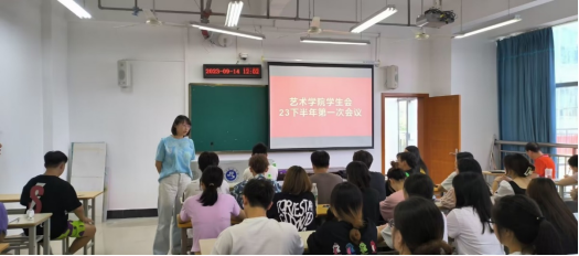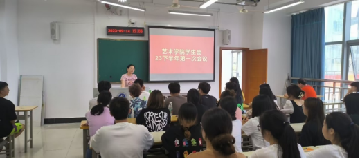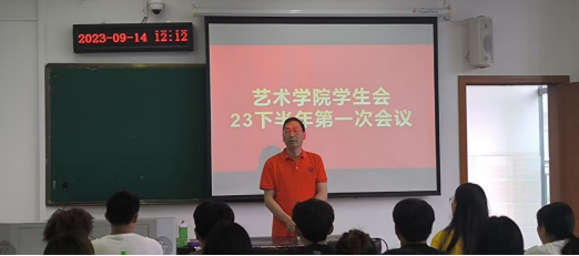 2023年9月14日中午,万象城awcsport官网学生会在尚艺楼A306召开本学期工作例会。例会由万象城awcsport官网学生会秘书部部长邱悦主持,院分党委书记兼副院长成传明、分党委副书记崔蕾、辅导员杨丹出席了会议。