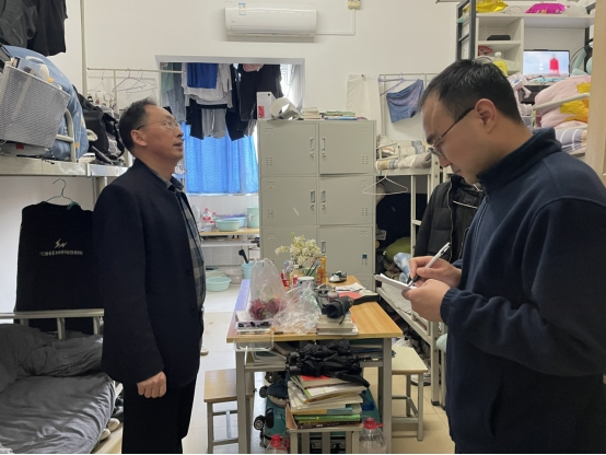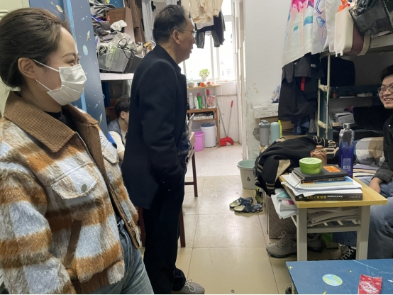 在走访过程中,老师们与同学们进行了深入的交谈。走访毕业生宿舍时,老师与同学们亲切交谈了关于就业和生活方面的话题,鼓励同学们积极就业、主动就业,对未来早做打算。