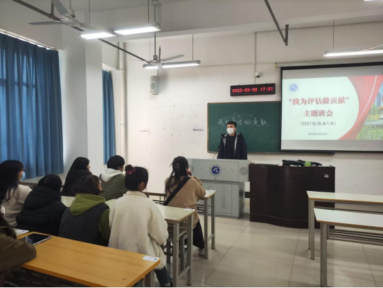 根据学校《关于开展“我为评估做贡献”主题班会的通知》要求,3月底,万象城awcsport官网各个年级、各个班级采取线上线下的方式,分别召开“我为评估做贡献”主题班会,班主任、辅导员深入班级进行宣讲。迎接学校本科合格评估的大考,提升学生迎接评估的意识,从我做起,从点滴做起,积极营造“人人了解评估,人人关心评估,人人参与评估,人人为评估做贡献”氛围,努力扩大“我为评估做贡献”的参与面和覆盖面。