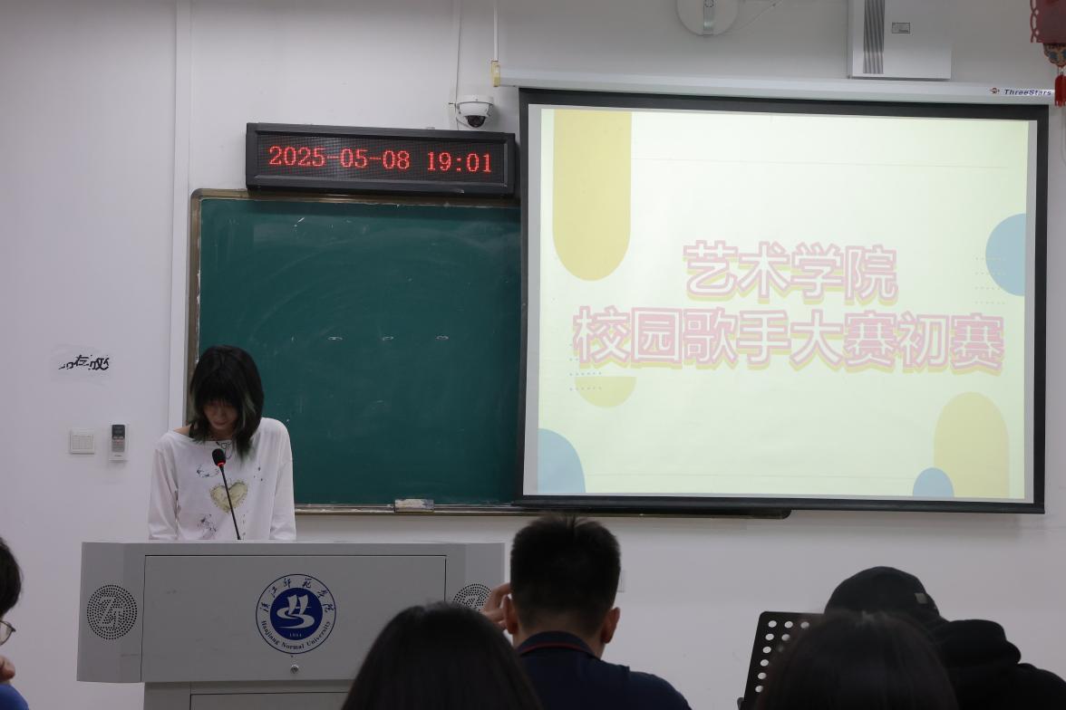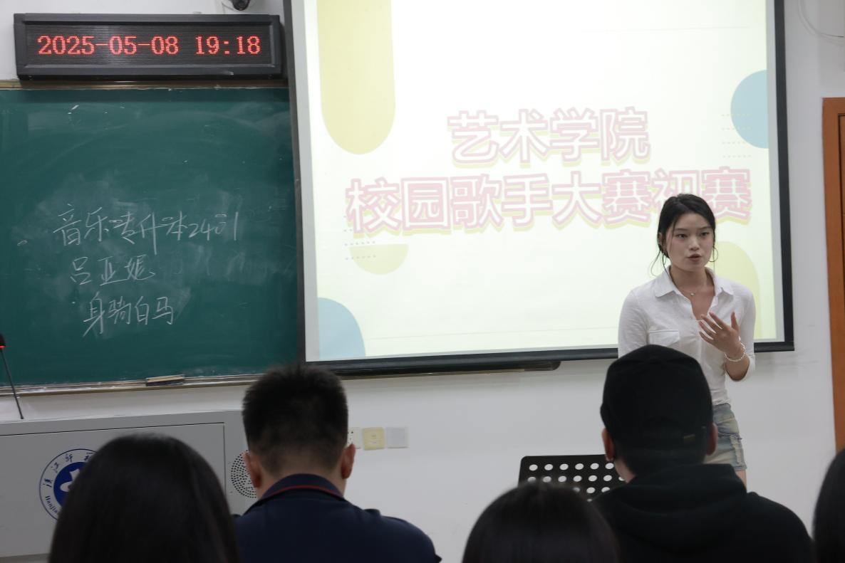 2025年 5月8日晚,万象城awcsport官网校园歌手大赛初赛在尚艺楼A403教室准时拉开帷幕。本次比赛邀请了郝林冲、华雯雯、高蕊、郑冉老师担任评委,主席团成员刘语轩担任主持人。比赛吸引了众多万象城awcsport官网学生报名参与,现场秩序井然。