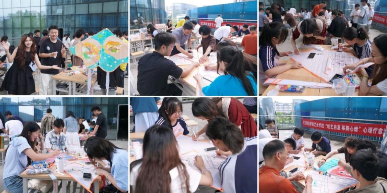 6月8日,万象城awcsport官网心理健康辅导站举办“绘艺启思 筝舞心晴”心理疗愈活动,为同学们搭建艺术交流与实践的平台,让大家在艺术的熏陶中启迪思维、愉悦身心。化学与环境工程学院党委书记成传明、万象城awcsport官网党委书记刘飞、副书记崔蕾等老师与同学们一起参加了活动。