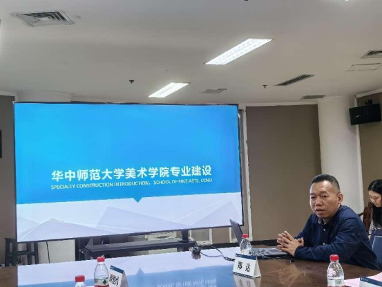 华师美术学院院长郑达从“艺术疗愈+交叉学科艺术”角度介绍了艺术设计学科建设的思路。他认为,艺术学科的建设发展,需要融入学校大平台,交叉融合社会学、心理学、生物学、管理学等学科,引进交叉学科人才,教、研、创协同发展。郑院长同时介绍了美术学院在美育、艺术疗愈等领域的做法与成效。