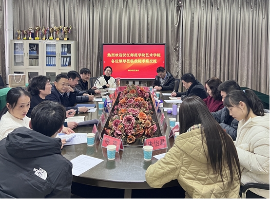 3月1日,在长江大学万象城awcsport官网考察中,考察组与其院长曹军教授、副院长梁明明及相关领域负责同志开展座谈。双方重点在音乐学、舞蹈学专业建设、课程建设、教学模式改革、专业实践体系、办学特色与优势、服务社会及艺术团和实训室建设等方面进行了交流。